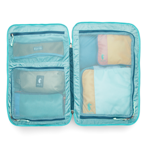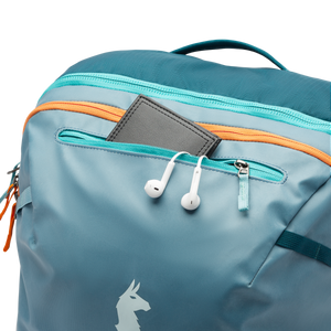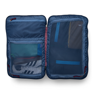 New features include better weight distribution and air mesh shoulder straps for an ultra-comfortable carry, an exterior stretch water bottle pocket, and a luggage pass-through strap that easily slides over the handle of a roller bag (like our Allpa Roller Bags). Most importantly, our Allpas are now made with 100% recycled fabrics.